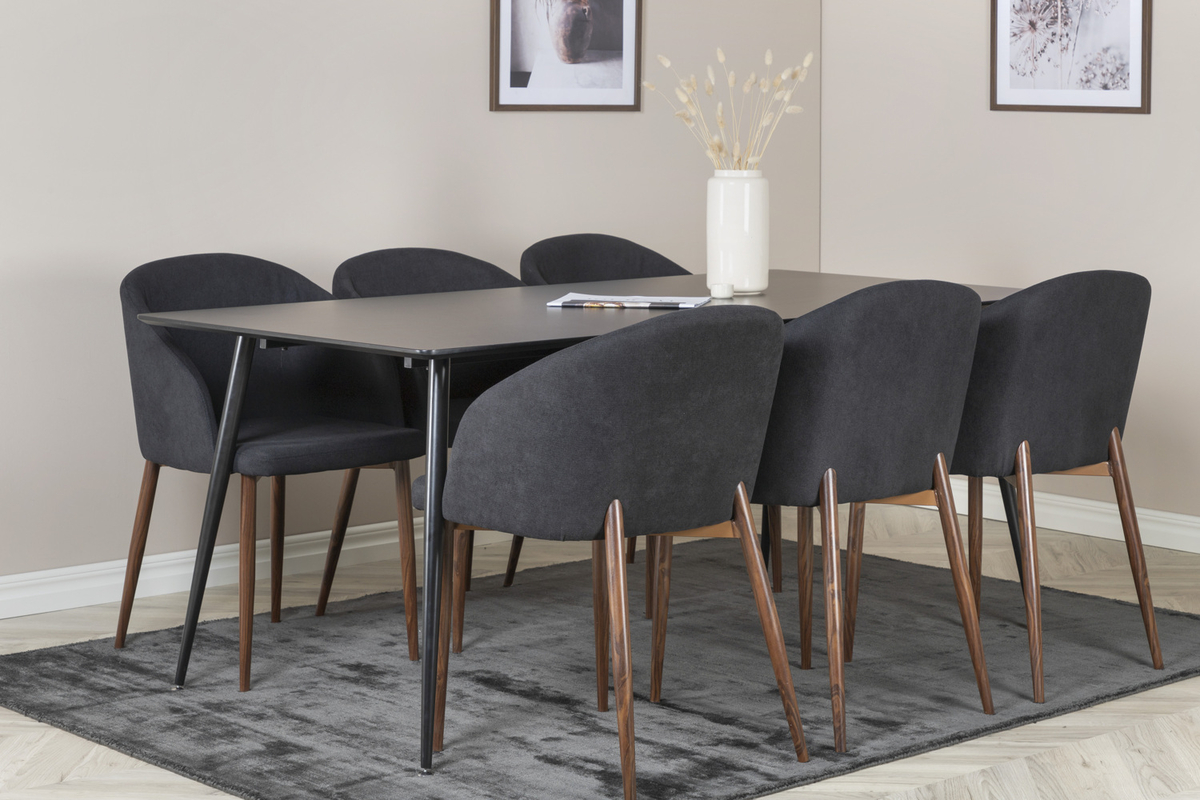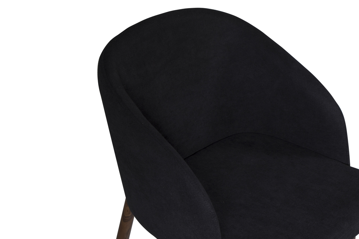 Arch est une chaise de salle à manger dont les pieds sont en métal huilé de noyer et qui est au sommet des tendances avec son design accrocheur ! Dossier incurvé et assise plate en tissu polyester noir avec rembourrage. Ici, vous pouvez vous asseoir confortablement avec votre famille et vos amis pendant des heures ! Conseil d'entretien : utilisez un spray textile pour imprégner le tissu avant de commencer à l'utiliser. Les saletés et les taches seront ainsi plus faciles à éliminer à l'avenir. Enlevez les taches immédiatement, ne frottez pas mais essayez d'absorber doucement avec un chiffon