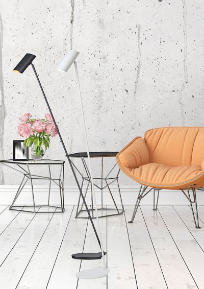 Utilisable avec une source lumineuse LED. Ce lampadaire est rotatif et inclinable. Avec un interrupteur On/off sur la lampe. Fabriqué en Métal