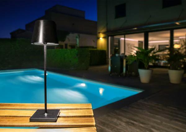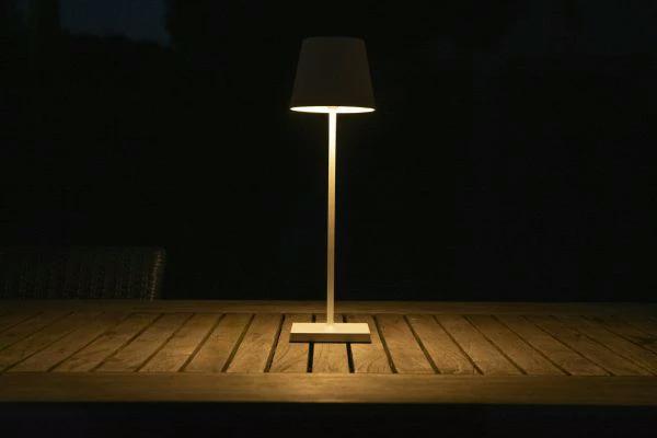 Une lampe de table pour votre table de jardin. Sans fil, claire et avec un clin d'oeil à un lampadaire classique : voici Justin. Vous pourrez charger cette lampe de table extérieure via USB. Il vous suffira de toucher le sommet du luminaire pour que Justin s'illumine. Justin est en aluminium de haute qualité. Vous pourrez ainsi immédiatement profiter de la lumière lorsque vous préparez votre barbecue dans l'obscurité.