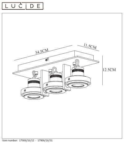 Consommation énergétique: 3x5W / 230V / A++ (incl.) - A intensité variable. Dimensions: Lon.34,5 x Larg.11,5 x Haut.12,5 cm. 2 Ans garantie sur le luminaire