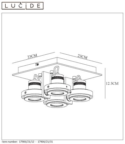 Consommation énergétique: 4x5W / 230V / A++ (incl.) - A intensité variable. Dimensions: Lon.23 x Larg.23 x Haut.12,5 cm. 2 Ans garantie sur le luminaire