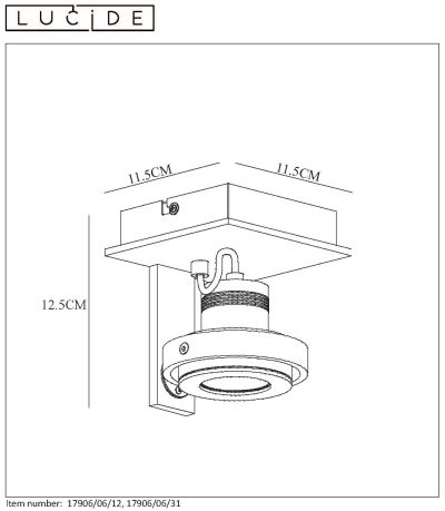 Consommation énergétique: 1x5W / 230V / A+ (incl.) - A intensité variable. Dimensions: Lon.11,5 x Larg.11,5 x Haut.12,5 cm. 2 Ans garantie sur le luminaire.